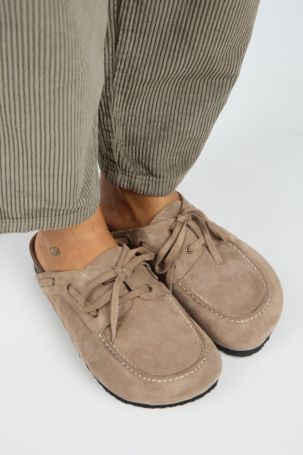 Manijero Karis Kadın Hakiki Deri Bağcıklı Sabo Vizon Terlik (MNJ.218.03)