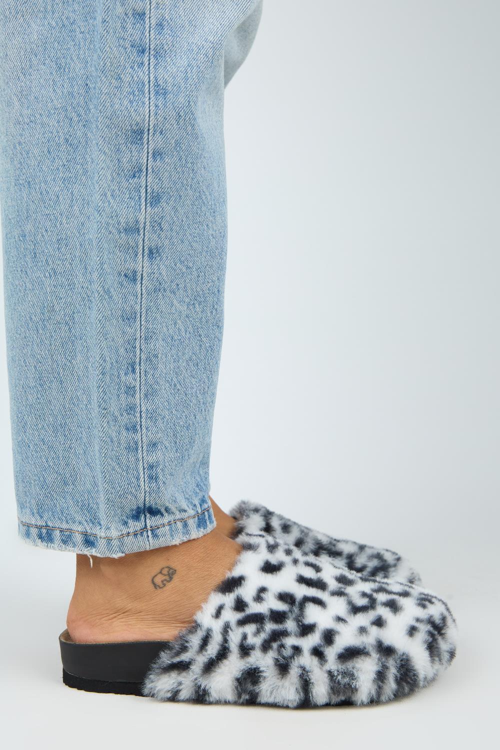 Manijero Leda Kadın Peluş Düz Beyaz Leopar Terlik
