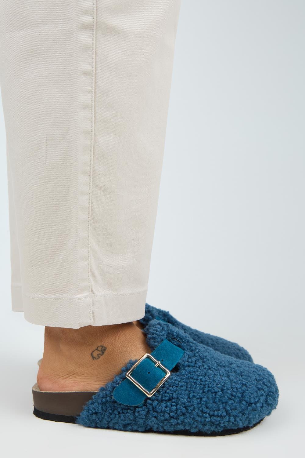 Manijero Suzen Teddy Kadın Kürklü Hakiki Deri Kemerli Tokalı Gece Mavisi Terlik
