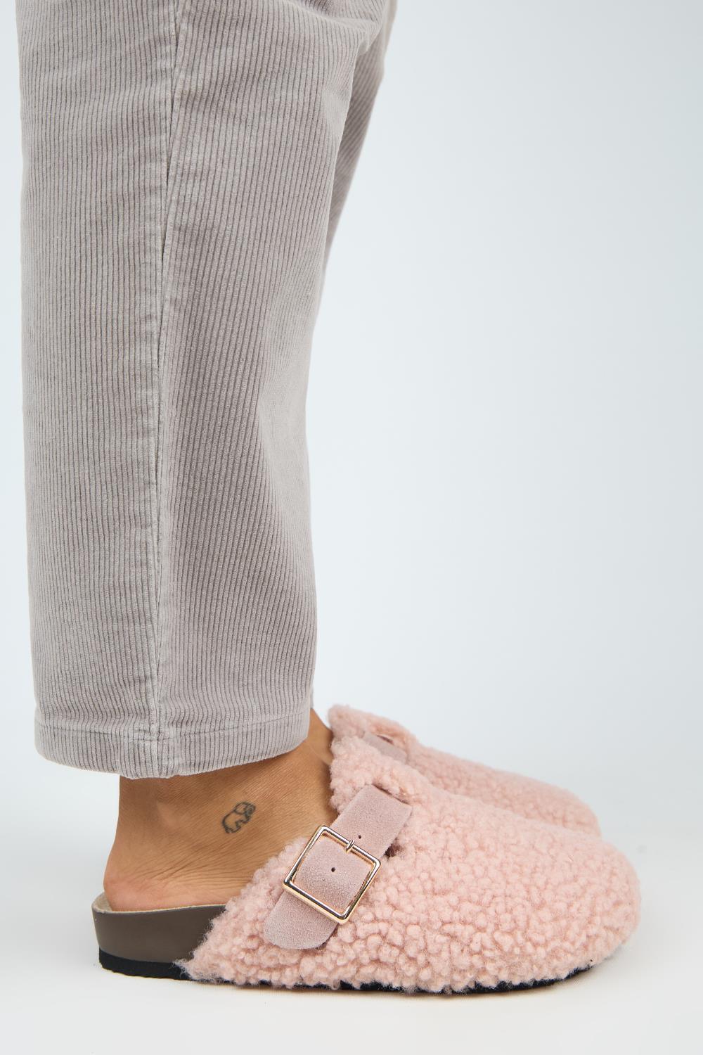 Manijero Suzen Teddy Kadın Kürklü Hakiki Deri Kemerli Tokalı Pudra Terlik (MNJ.101.12)